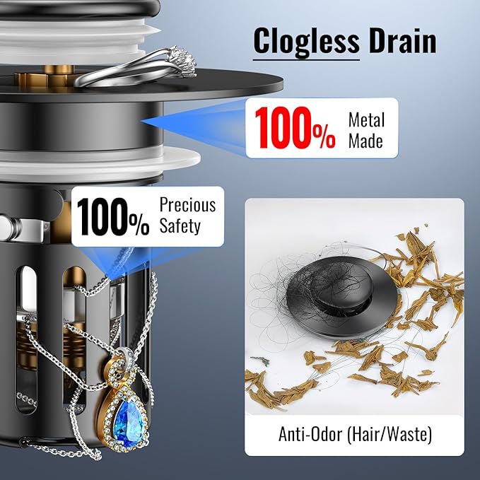 - [β Ultimate Clog Prevention] Our ultra-fine stainless steel sink drain strainer acts as a powerful barrier, effectively trapping hair, soap scum, debris, and even small jewelry before they enter the sink drain. Protect your pipes from costly blockages and eliminate the need for harsh chemical drain cleaners. Enjoy peace of mind with a clear, free-flowing sink drain every day.